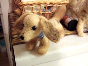 この展覧会を見たダックスを飼っている方から作品の注文を受けました。いろんなアングルからの写真を預かり、そこから作りました。